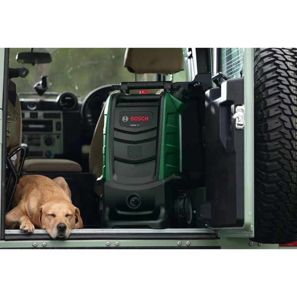 Der Akku-Druckreiniger Fontus von Bosch eignet sich dank des 15-Liter-Tanks und des 18-Volt-Akkubetriebs perfekt für eine Verwendung zu Hause oder auch unterwegs. Er bietet einen 3-stufig einstellbaren Druck und vier verschiedene Spritzmuster zur Auswahl, einen Punktstrahl für hartnäckigen Schmutz, einen 15°-Fächerstrahl für Präzision auf kleineren Oberflächen, einen 50°-Fächerstrahl zum Abbrausen größerer Bereiche und einen weichen Duschstrahl zum sanften Reinigen z.B. von schlammigen Hundepfoten. Die aufsteckbare Waschbürste SmartBrush ist ideal zum Putzen von Fenstern oder Fahrrädern geeignet. Die Zubehör-Aufbewahrung direkt am Gerät und die Lagerung der Pistole während der Verwendung machen die Reinigung noch bequemer. Der Akku-Druckreiniger Fontus ist außerdem mit dem intelligenten Bosch Syneon Chip ausgestattet. Der Syneon Chip analysiert dabei durchgängig den Energiebedarf und entnimmt dem Akku nur soviel Energie, wie für die optimale Leistung für anspruchsvolle Anwendungen, oder maximale Ausdauer bei weniger intensiven Arbeiten notwendig ist. Der ausziehbare Handgriff und zwei robuste Räder ermöglichen einen schnellen Aufbau und ein leichtes Manövrieren.Art.-Nr.: 1827031