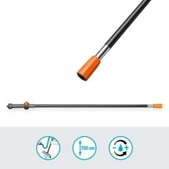 Der Cleansystem Stiel Größe M von GARDENA misst 150cm. Der leichte, stabile Stiel ist aus hochwertigem Aluminium gefertigt und mit einem rutschfesten, kälteisolierenden Kunststoffüberzug ausgestattet, der für komfortable Handhabung sorgt und Kratzspuren verhindert. Durch die Kombination unterschiedlicher Stiele und Stielbürsten ist die Anpassung an das Einsatzgebiet kinderleicht. Die Wasserzufuhr kann direkt am Griff stufenlos reguliert oder auch komplett abgestellt werden. Das GARDENA Cleansystem ist die ideale Lösung für alle Reinigungsaufgaben rund um Haus und Garten. Das wasserführende Reinigungssystem mit dem Original GARDENA System-Anschluss ist vielseitig kombinierbar. Es besteht aus verschiedenen Handbürsten für den Einsatz auf kleineren Flächen und Stielen mit passenden Vorsatzgeräten, wenn mehr Reichweite benötigt wird oder die zu reinigende Fläche größer ist. Der Wasserdurchfluss ist stufenlos regulierbar, und die Nasspflege kann mit klarem Wasser oder unter Zusatz von GARDENA Reinigungstabs oder GARDENA Seifenstäbchen erledigt werden.Art.-Nr.: 100025279