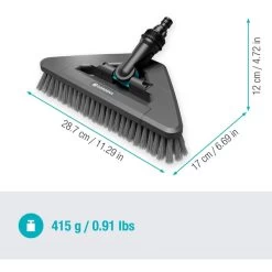 Die Cleansystem Stielbürste soft flex 18812-20 von GARDENA eignet sich zur Reinigung größerer empfindlicher Flächen, z.B. Pergola, Wintergarten. Die praktische Dreiecksform und das 360° Drehgelenk ermöglicht die mühelose Reinigung schwer zugänglicher Stellen wie Ecken und Winkel. Die Stielbürste soft flex ist mit allen GARDENA Cleansystem Wasserstielen kompatibel. Das GARDENA Cleansystem ist die ideale Lösung für alle Reinigungsaufgaben rund um Haus und Garten. Das wasserführende Reinigungssystem mit dem Original GARDENA System-Anschluss ist vielseitig kombinierbar. Es besteht aus verschiedenen Handbürsten für den Einsatz auf kleineren Flächen und Stielen mit passenden Vorsatzgeräten, wenn mehr Reichweite benötigt wird oder die zu reinigende Fläche größer ist. Der Wasserdurchfluss ist stufenlos regulierbar, und die Nasspflege kann mit klarem Wasser oder unter Zusatz von GARDENA Reinigungstabs oder GARDENA Seifenstäbchen erledigt werden.Art.-Nr.: 100025295