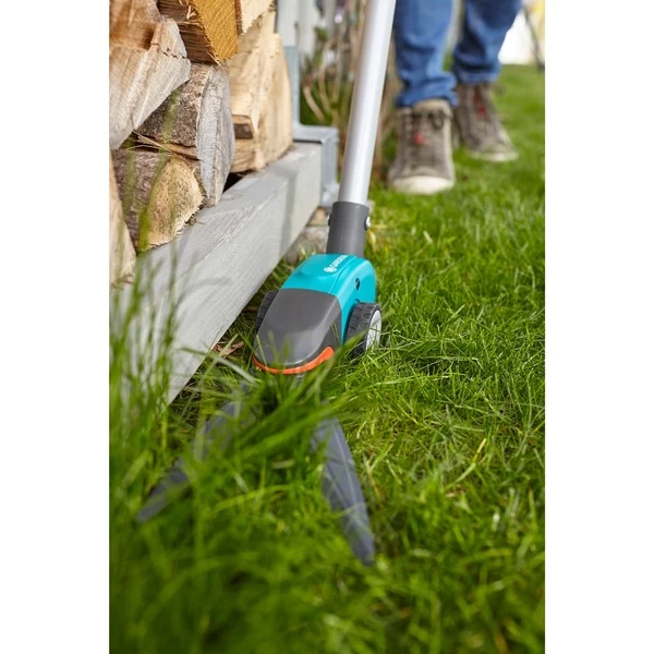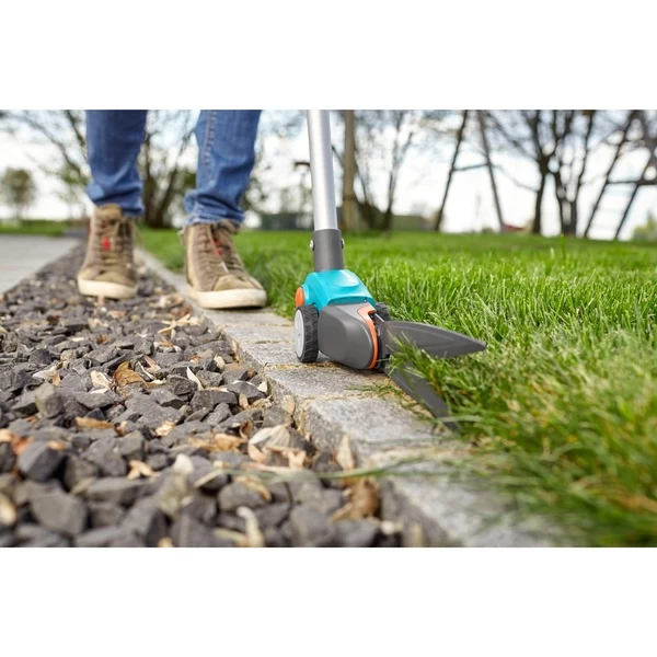 Die drehbare GARDENA Comfort Grasschere 12100-20 mit Stiel erlaubt einen exakten Rasenkantenschnitt in rückenschonender, aufrechter Körperhaltung. Darüber hinaus kann der Stiel dank des Stiel-Neigungswinkels für ergonomisches Arbeiten an jede Körpergröße angepasst werden. Dank der antihaftbeschichteten, reibungsoptimierten Schneidemesser und der selbstschärfenden Klinge wird stets kraftvolles Schneiden bei gleichbleibender Schnitthöhe ermöglicht. Große Laufräder sorgen für präzise Führung und ein angenehmes Schieben der Gartenschere. Unterstützt durch den ergonomischen Griff mit zusätzlicher Weichkunststoff-Komponente ist die Bedienung der drehbaren GARDENA Comfort Grasschere mit Stiel bequem und ohne Bücken möglich. Des Weiteren lassen sich die Schneiden für ein flexibles Arbeiten nach beiden Seiten bis 90° drehen. Durch einen praktischen Einhand-Sicherheitsverschluss kann die Comfort Grasschere schnell und einfach geschlossen werden.Art.-Nr.: 1394579