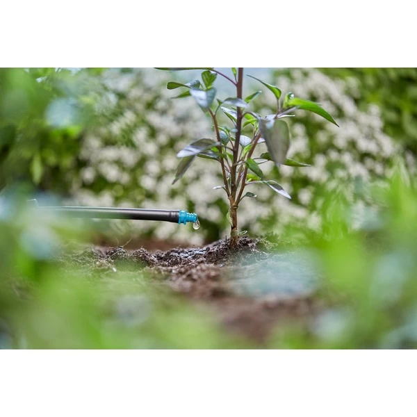 Der GARDENA Endtropfer eignet sich im Micro-Drip-System zur punktuellen Bewässerung von längeren Pflanzenreihen oder Einzelpflanzen mit ähnlichem Wasserbedarf, wie z.B. Hecken. Die Wasserausbringmenge beträgt ca. zwei Liter pro Stunde. Für die Bewässerung einzeln stehender Pflanzen wird der Endtropfer einfach am Ende des 4,6mm (3/16“)-Verteilerrohrs eingedreht. Mit dem GARDENA Montagewerkzeug kann außerdem das 13mm (1/2“)-Verlegerohr gelocht und der Endtropfer direkt eingedreht werden. Die mitgelieferte Reinigungsnadel dient zum einfachen Säubern eines verschmutzten Tropfers. Das System ist durch die Wiederverwendbarkeit sehr nachhaltig, denn dank der GARDENA „Quick & Easy“-Verbindungstechnik können alle Komponenten mühelos ohne Werkzeug miteinander verbunden, flexibel erweitert und bei Umbauarbeiten einfach wieder gelöst werden.Art.-Nr.: 1890345