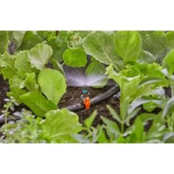 Die GARDENA Sprühdüse 180° sorgt in GARDENA Micro-Drip-Systemen für eine halbkreisförmige, flächendeckende Bewässerung von Beeten oder entlang von Beeträndern. Aus der Sprühdüse kommt ein feiner Sprühnebel mit einer Reichweite von 2,75 Metern, der eine Gesamtfläche von 14 m² bewässern kann. Die Installation an das 13mm-Verlegerohr ist einfach und funktioniert entweder mit Hilfe des Montagewerkzeugs direkt in das Rohr, oder durch die Verwendung des T-Stücks für Sprühdüsen. In wenigen Handgriffen ist die Sprühdüse am besten am Rand des Beetes angebracht und sofort einsatzbereit. Mit dem separat erhältlichen Verlängerungsrohr für Sprühdüsen (Art.-Nr. 13326-20) kann man die Position der Micro-Drip-System-Düse erhöhen. So können auch höher gewachsene Pflanzen von oben herab beregnet werden. Kombiniert mit dem Absperrventil (Art.-Nr. 13207-20) ist es möglich, den Wasserdurchfluss stufenlos zu regulieren oder einzelne Stränge des Verlegerohres abzusperren. Das sorgt für eine optimale, wassersparende Bewässerung. Dank des intuitiven Designs ist das Sprühbild am Sprühkopf erkennbar, wodurch sich alle GARDENA Sprühdüsen optisch klar voneinander unterscheiden lassen. Das Qualitätsprodukt wird in Deutschland hergestellt.Art.-Nr.: 1890293