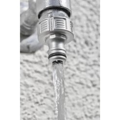 Der GARDENA Premium Hahnverbinder 18242-50 ermöglicht den sicheren Anschluss eines Gartenschlauchs an Wasserhähne mit Gewinde. Dank des Original GARDENA Systems lassen sich beliebige Anschlussgeräte einfach und schnell an den Wasserhahn anstecken. Alles passt perfekt zusammen und bleibt wasserdicht. Der Premium Hahnverbinder in Metall-Ausführung ist für Wasserhähne mit 33,3mm (G 1″)-Gewinde geeignet.