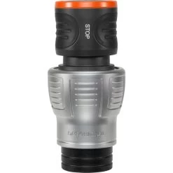 Der am Schlauchende befestigte GARDENA Wasserstop 18254-20 ermöglicht selbst bei hohem Wasserdruck einen Wechsel der Anschlussgeräte. Beim Entkuppeln stoppt das Wasser automatisch und beim Anschließen fließt das Wasser wieder. Mit dem GARDENA Premium Wasserstop lassen sich bequem Anschlussgeräte tauschen, ohne zum Wasserhahn zurücklaufen zu müssen. Die gerillten Griffmulden aus Weichkunststoff sorgen für einen guten Halt. Dank der stabilen Klemmmutter aus Metall hat der Wasserstop eine hohe Schlauchhaltekraft und die Geräte lassen sich leicht montieren. Art.-Nr.: 1394628