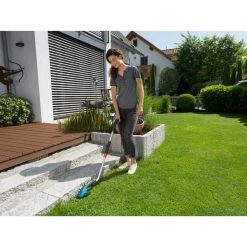 Der GARDENA Teleskopstiel 9859-20 für die GARDENA Akku-Grasscheren ComfortCut Li und ClassicCut Li erlaubt das einfache Schneiden von Rasenkanten und Bodendeckern in aufrechter Körperhaltung. Zudem bietet der Teleskopstiel eine größere Reichweite bei Hecken und seitlichem Formschnitt. Dank der kabellosen Steckverbindung ist die Montage besonders schnell und einfach. Der Stiel beinhaltet zwei Laufräder für die Grasschere und lässt sich stufenlos von 74cm bis 96cm in der Höhe verstellen.Art.-Nr.: 1494382