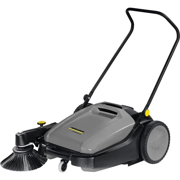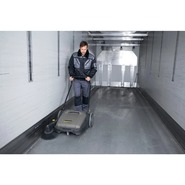 Die Handkehrmaschine KM 70/20 C von Kärcher macht die Reinigung von Flächen dank Filter, verstellbarer Kehrwalze und Seitenbesen nahezu staubfrei und mühelos, egal ob im Innen- oder Außenbereich. Die Flächenleistung ist dabei siebenmal höher als mit einem Kehrbesen. Sie eignet sich zur Reinigung von Produktions-, Lager- und Logistikhallen oder für Verladeflächen. Die Kehrwalze lässt sich in sechs Stufen einstellen und erzielt im Zusammenspiel mit den stufenlos gelagerten Seitenbesen ein optimales Reinigungsergebnis auf unterschiedlichen Böden. Zum Schutz der Borsten können die Kehrwalze und der Seitenbesen auch komplett entlastet werden. Der Staubfilter reinigt die Abluft und minimiert so die Staubentwicklung beim Kehren. Das Filtersystem ist leicht zugänglich, so dass der Filter bei Bedarf schnell gewechselt werden kann. Der höhenverstellbare Schubbügel sowie das Home-Base-System zum Mitführen von weiterer Ausrüstung wie Eimer oder Grobschmutzzange sorgen für ergonomisches Arbeiten. Dadurch kann in einem Schritt neben Staub und Schmutz auch Müll entsorgt werden. Anderes Zubehör kann in einer Tasche am Schubbügel griffbereit mitgeführt werden. Anschließend lässt sich die Kehrmaschine KM 70/20 C durch eine Parkstellung platzsparend verstauen.Art.-Nr.: 100021344