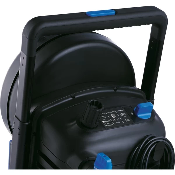 | Aufbewahrung | Netzkabel-Aufwicklung, Schlauchtrommel, Fach fĂĽr DĂĽsen, integrierte Lanzenhalterung | ||