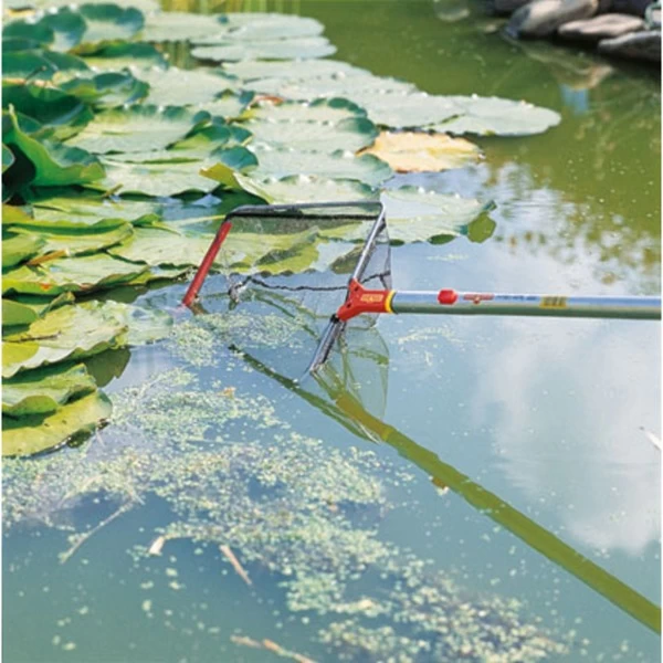 Mit dem vielfältigen Sortiment aus Aufsätzen und Stielen für unterschiedliche Anwendungen aus dem multi-star® System von WOLF-Garten wird die Reinigung kinderleicht. Mit dem grobmaschigen Kescher WK-M kann man den Gartenteich mühelos von Laub und Schmutz reinigen. Er eignet sich ebenfalls zum Einfangen von Fischen, der flexible Kunststoffbügel schützt dabei die Fische und die Teichfolie. Mit dem separat erhältlichen Vario-Stiel z.B. ergibt sich eine Reichweite von bis zu 4 Metern.Art.-Nr.: 1411361